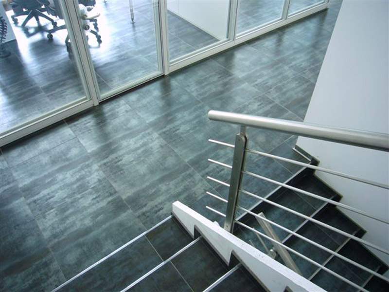 Treppenkantenprofil aus eloxiertem Aluminium für die rutschfeste und sichere Gestaltung von Treppenstufen aus Keramik geringer Stärke oder aus Kerlite/Laminam.