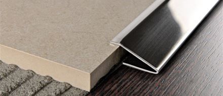 Serie selbstklebender Fugen-Übergangsprofile aus Edelstahl in diverser Breite für die Verbindung von gleichartigen oder verschiedenen...