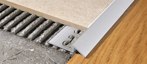 Торцевой профиль с плавным переходом в виде спуска для соединения Kerlite и Laminam и керамики малой толщины друг с другом или же с деревом и/или существующим полом.
